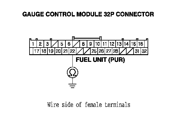 12. Check for continuity between gauge control module 32P connector terminal No. 22 and body ground.