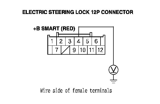 5. Measure the voltage between body ground and electric steering lock 12P connector terminal No. 4.
