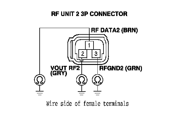 9. Check for continuity between body ground and RF unit 2 3P connector terminals No. 1, No. 2, and No. 3 individually.