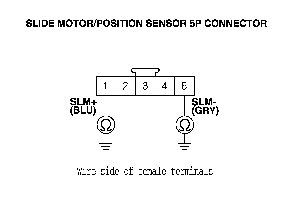 30. Check for continuity between body ground and slide motor/position sensor 5P connector terminals No. 1 and No. 5 individually.