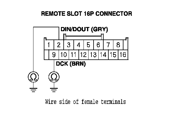 10. Check for continuity between body ground and remote slot 16P connector terminals No. 2 and No. 9 individually.