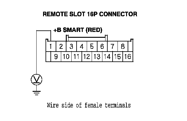 14. Measure the voltage between body ground and the remote slot 16P connector terminal No. 1.