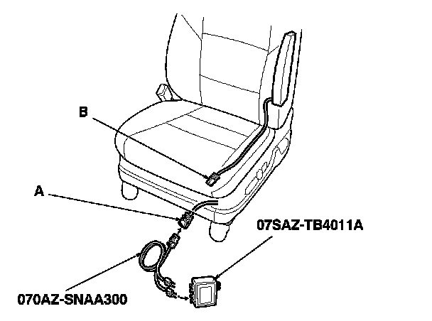16. Measure the voltage between each terminal of the black SRS simulator lead (A) and body ground. There should be less than 0.2 V.