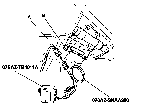 6. Connect the SRS inflator simulator (2 Ohms connectors) and simulator lead L to the SRS floor wire harness.