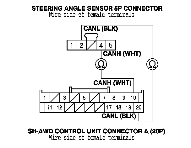 NO - Intermittent failure, the system is OK at this time. Check for intermittent open between SH-AWD control unit connector terminals A10 and A20 and steering angle sensor 5P connector terminals No. 2 and No. 4.