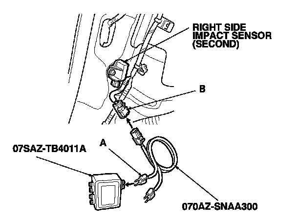 6. Disconnect the SRS floor wire harness 4P connector from the right side impact sensor (first). Side Impact Sensor (First) Replacement