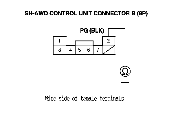 7. Check for continuity between SH-AWD control unit connector terminal B2 and body ground.