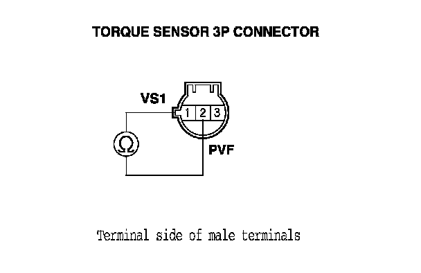 14. On the sensor side, measure the resistance between torque sensor 3P connector terminals No. 1 and No. 2.