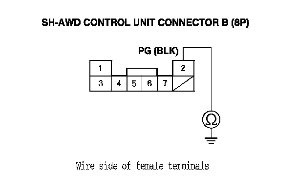 8. Check for continuity between SH-AWD control unit connector terminal B7 and body ground.