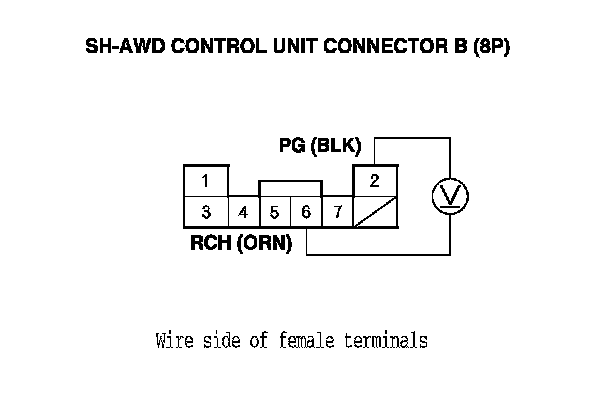17. Measure the voltage between SH-AWD control unit connector terminals B2 and B7.