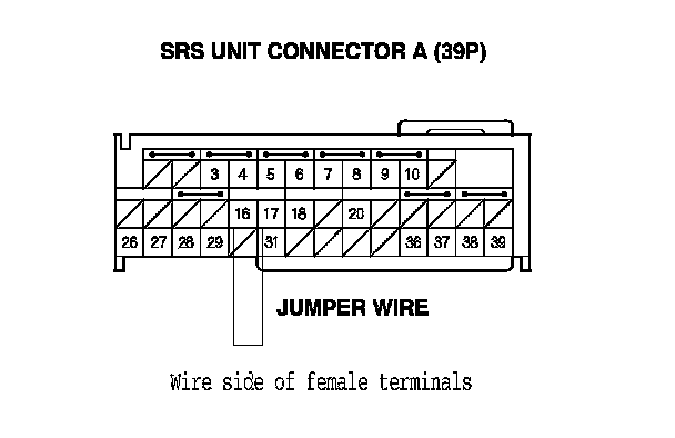 9. Install a jumper wire between SRS unit connector A (39P) terminals No. 16 and No. 17.