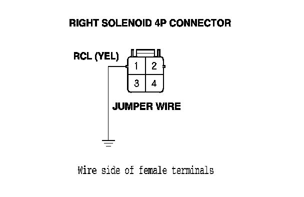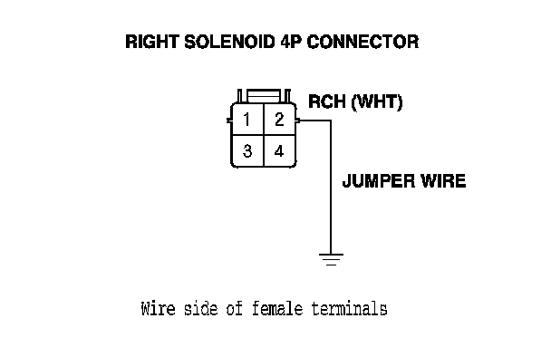 12. Remove the jumper wire from right solenoid 4P connector terminal No. 2.