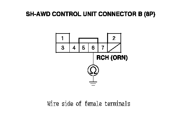 8. Check for continuity between SH-AWD control unit connector terminal B7 and body ground.