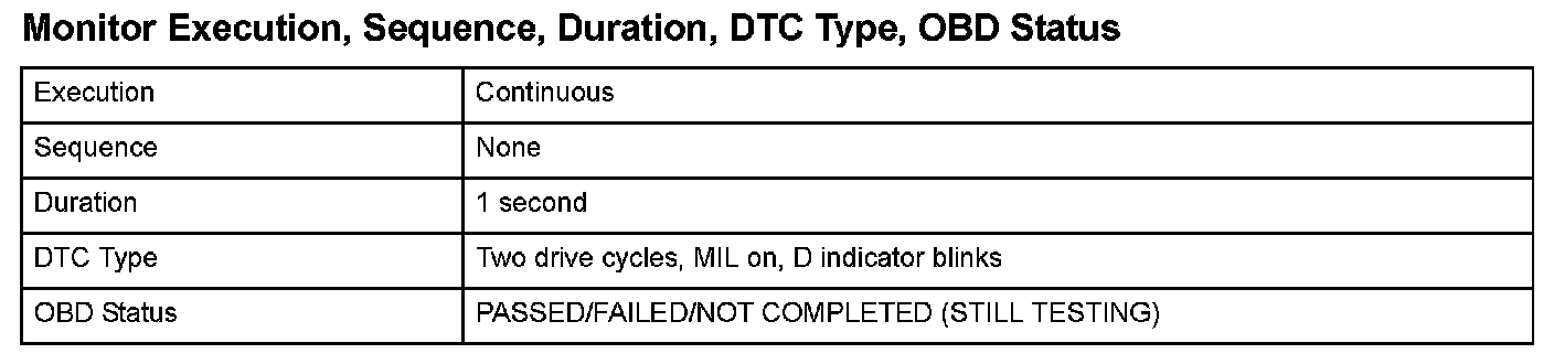 Monitor Execution, Sequence, Duration, DTC Type, OBD Status