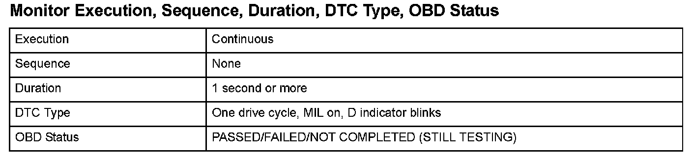 Monitor Execution, Sequence, Duration, DTC Type, OBD Status