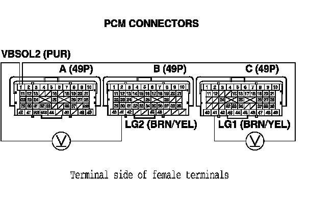 11. Disconnect PCM connectors B (49P) and C (49P).