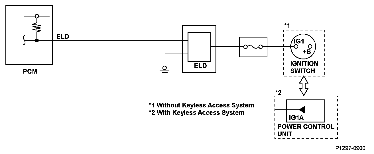 The electrical load detector (ELD) is built into the under-hood fuse/relay box. It monitors the current fed to the ignition switch and sends a signal to the powertrain control module (PCM). If the ELD output voltage is extremely high, a malfunction is detected and a DTC is stored.