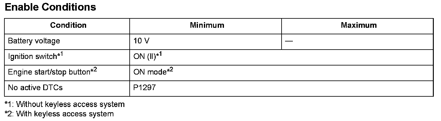 Conditions for setting the DTC