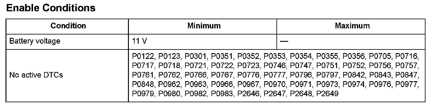 Conditions for setting the DTC