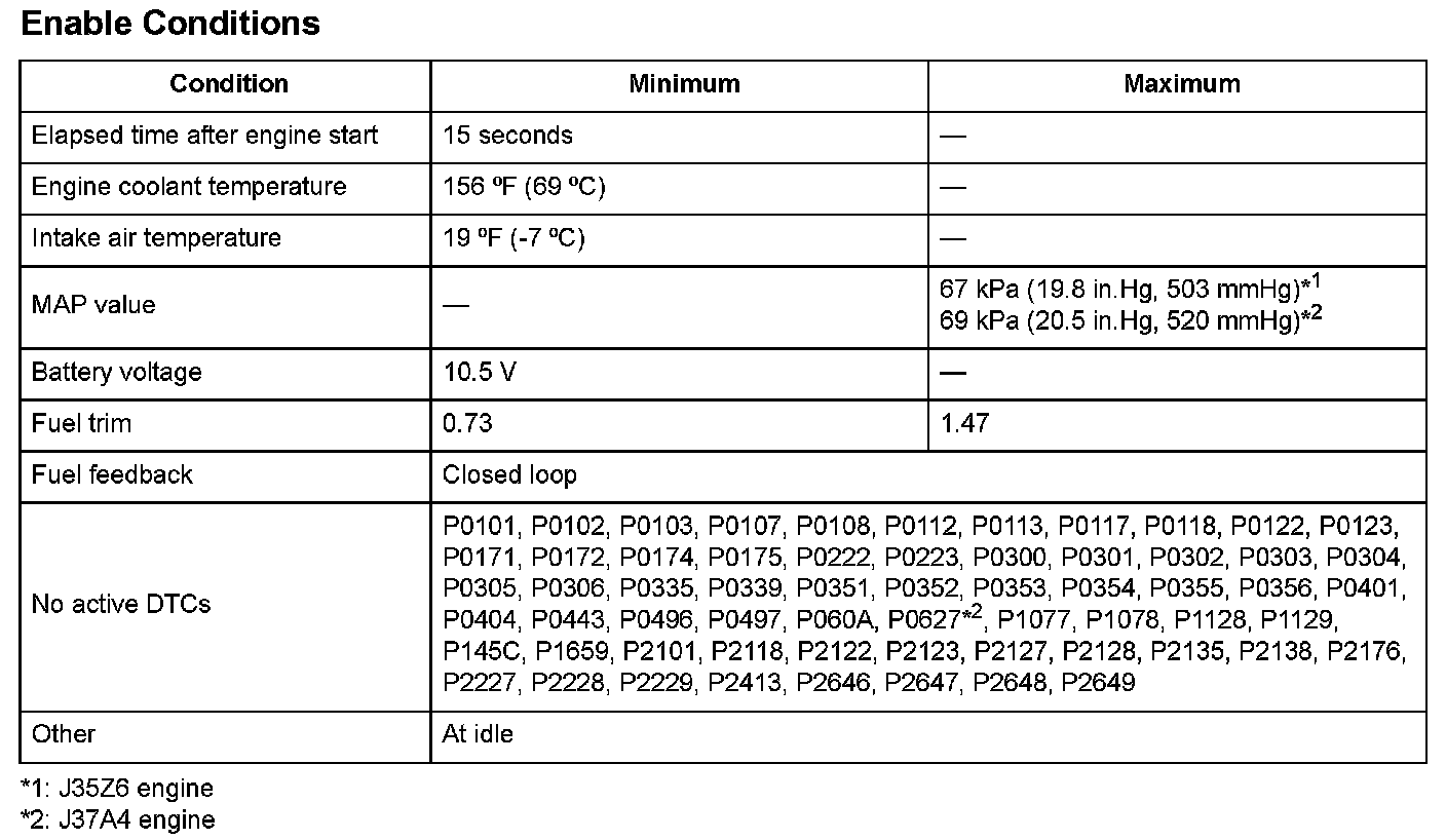 - The estimated volume of intake air is 185 L/min (196 US qt/min, 163 Imp qt/min)*1, (209 L/min (220 US qt/min, 183 Imp qt/min))*2 or more when the MAP value is 34 kPa (10.2 in.Hg, 260 mmHg).