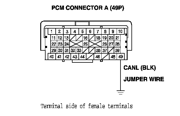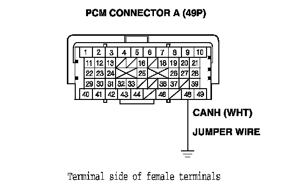 12. Connect PCM connector terminal A49 to body ground with a jumper wire.