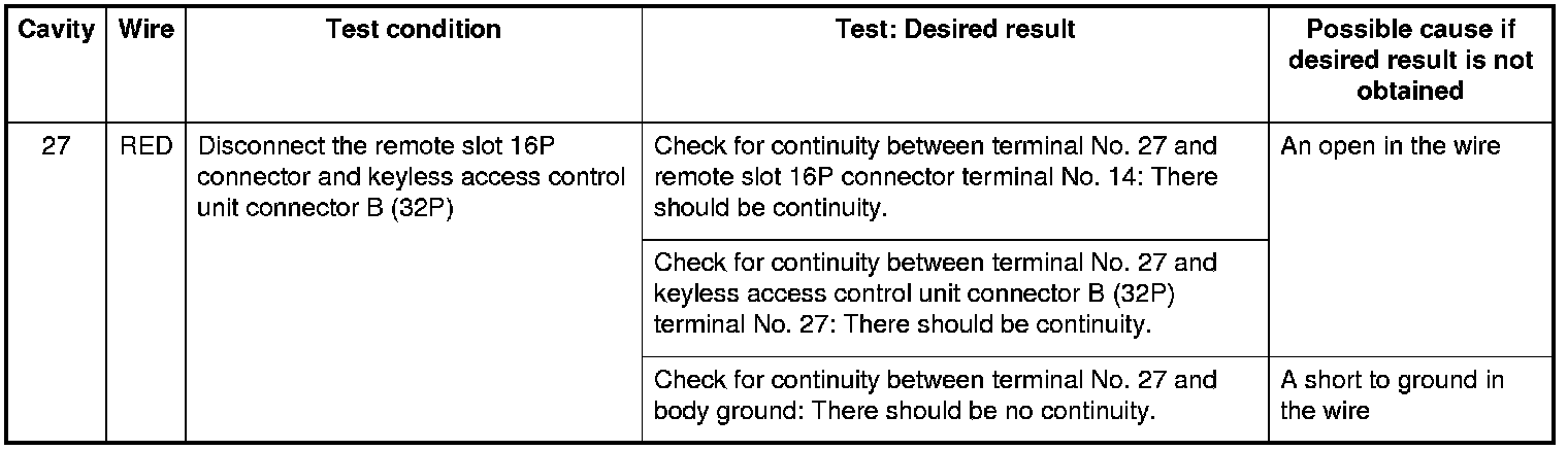 24. If multiple failures are found on more than one control unit, replace the keyless access control unit. If input failures are related to a particular control unit, replace the control unit.