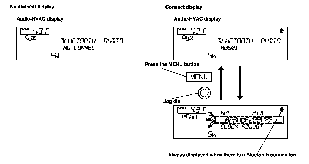 - If you push the AUX button when no cell phone is connected, NO CONNECT is displayed.