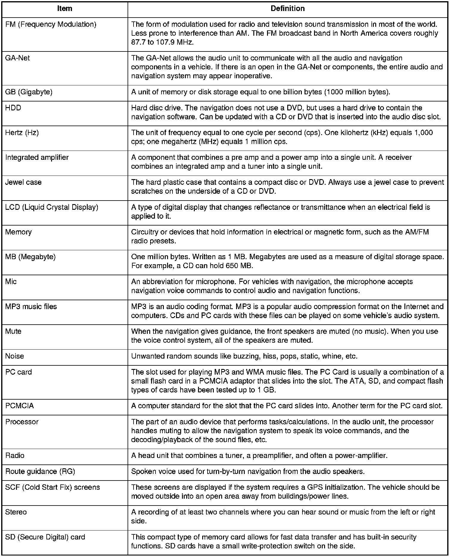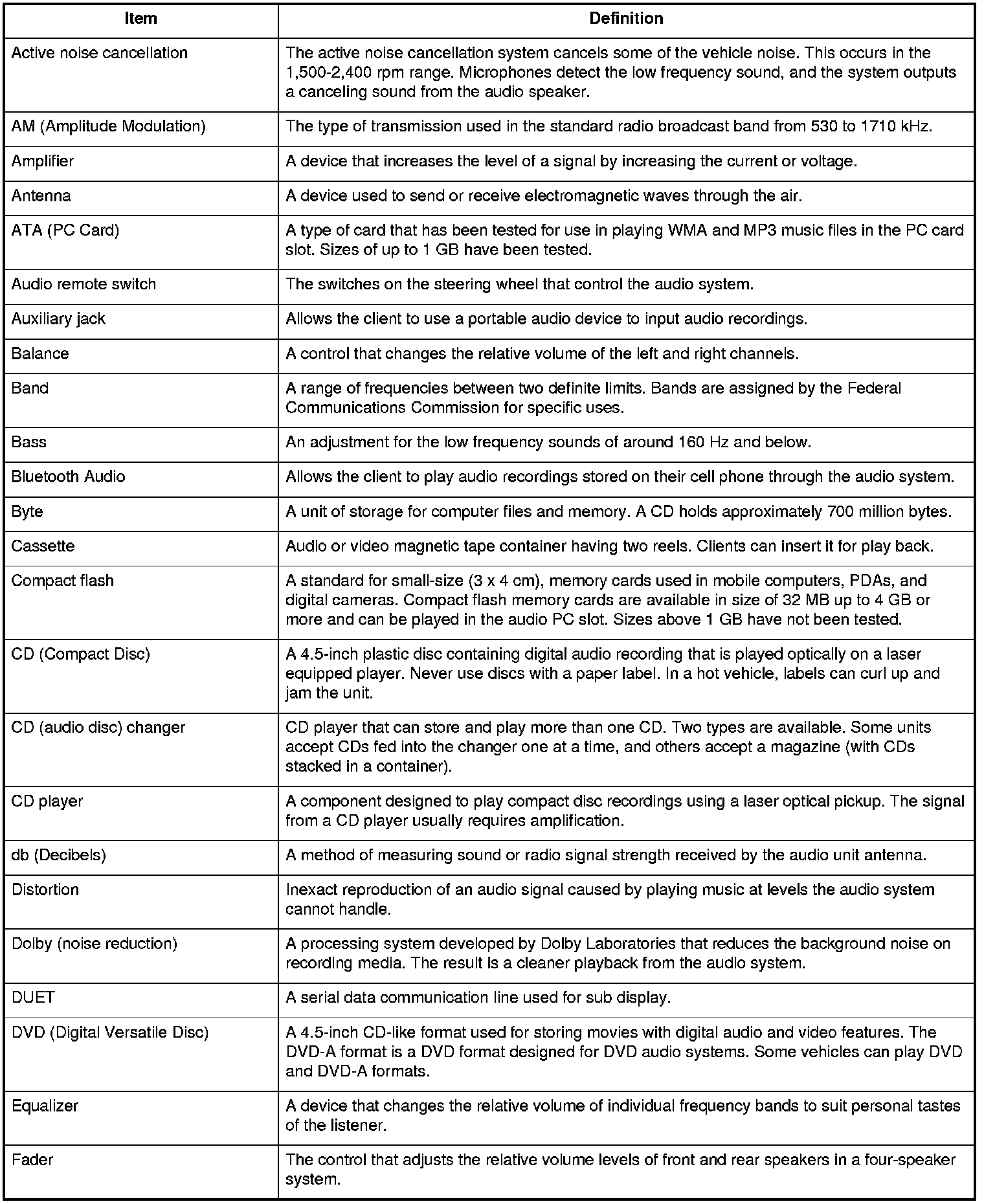 Audio Glossary