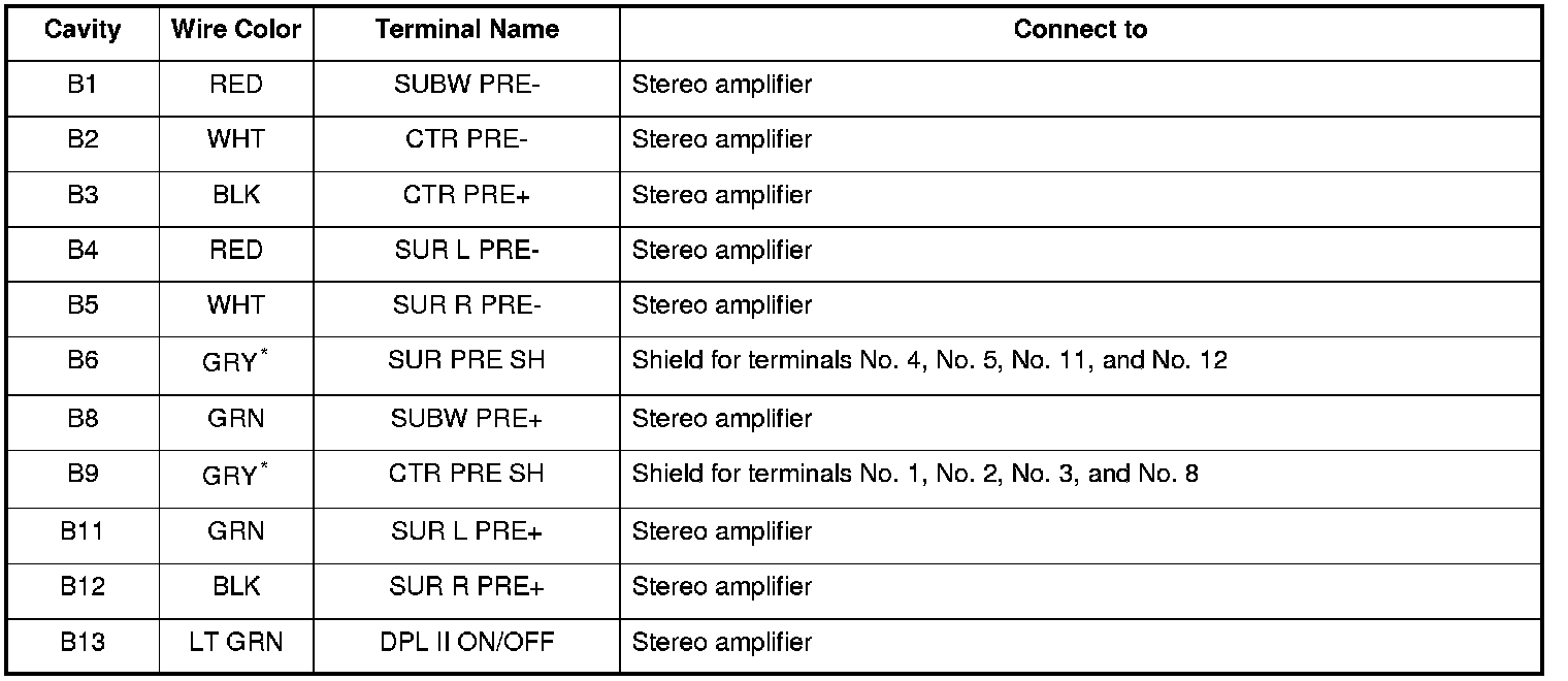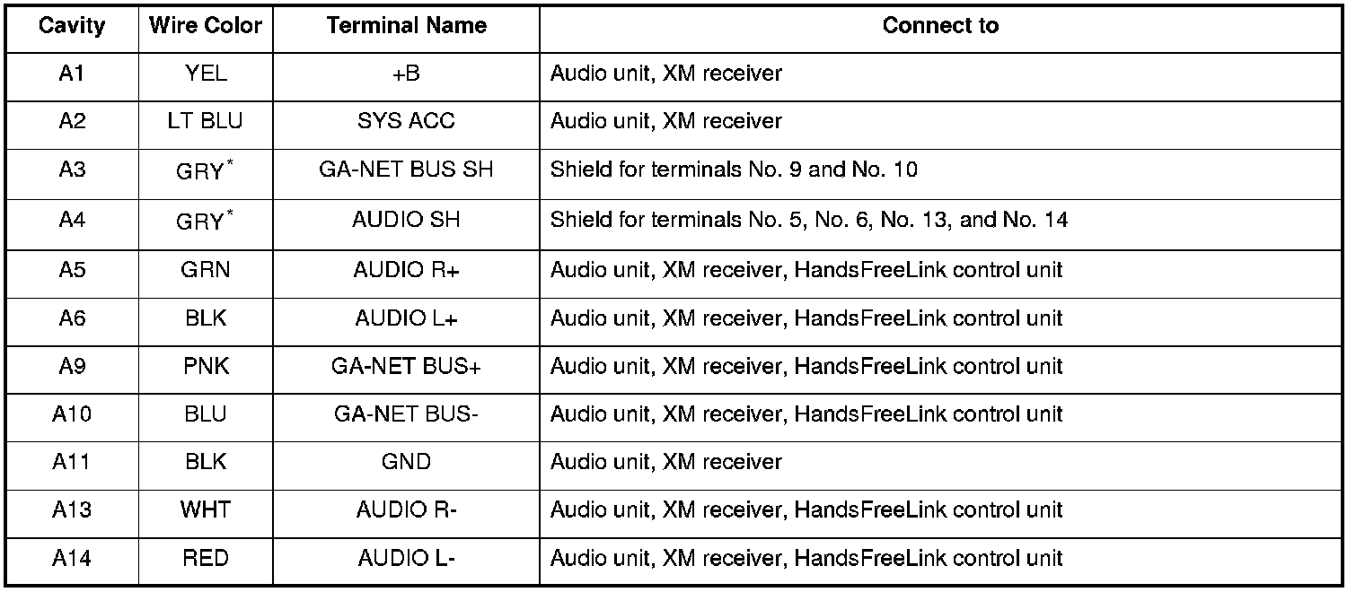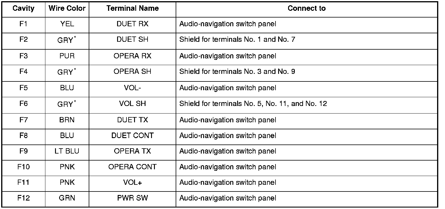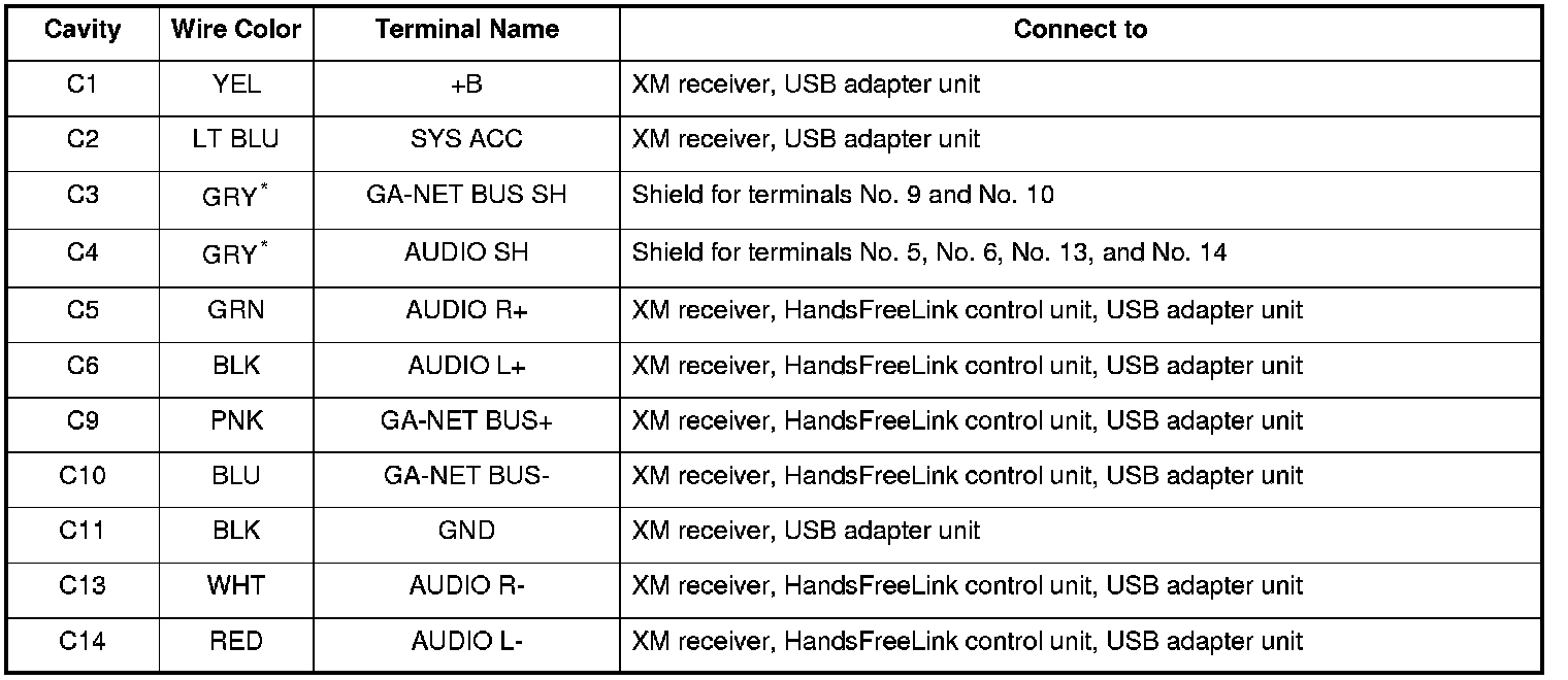 *1: The shielded wires have a heat-shrunk tube insulating the outside of the wire. The color of the insulating tube, typically black or dark gray, may not match the color of the wire listed on the schematic.