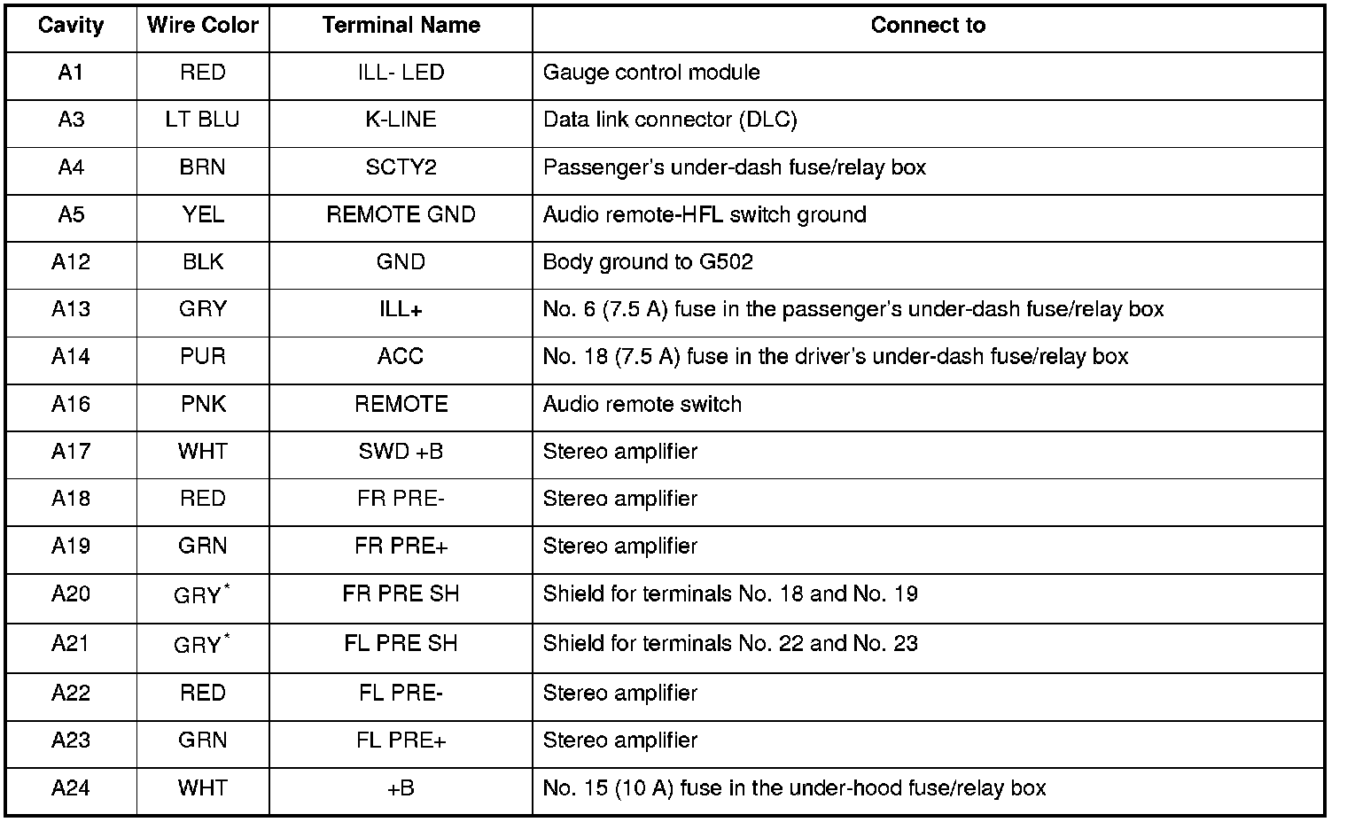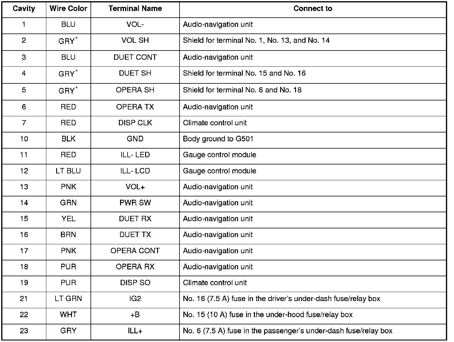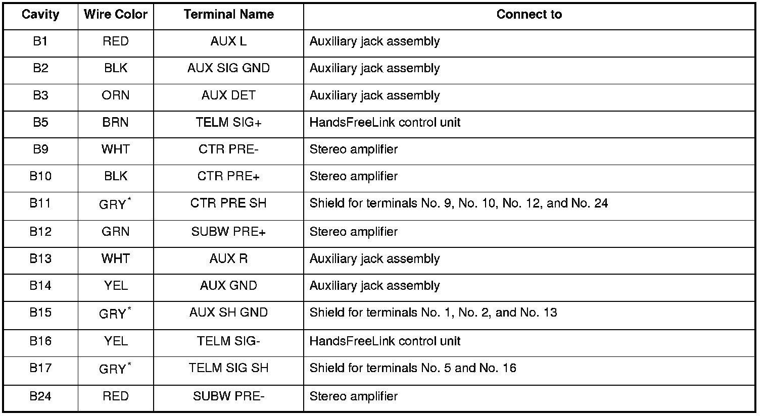 *1: The shielded wires have a heat-shrunk tube insulating the outside of the wire. The color of the insulating tube, typically black or dark gray, may not match the color of the wire listed on the schematic.