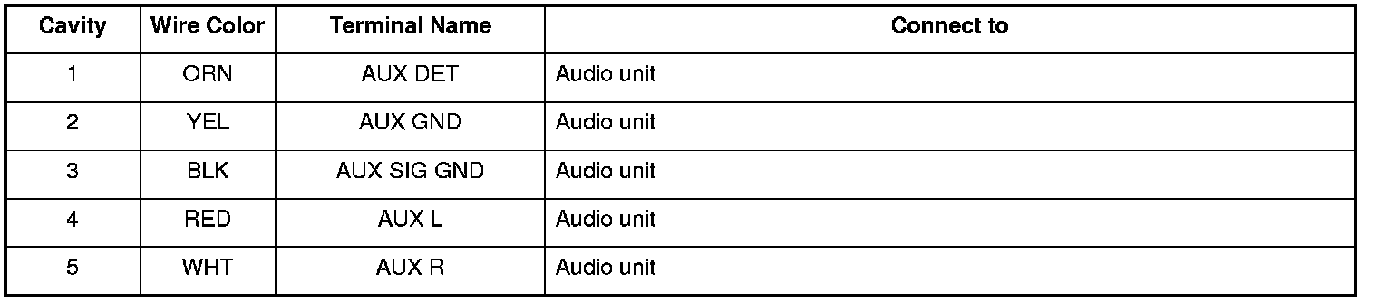 Audio-HVAC Display Unit Connector for Inputs and Outputs (Without navigation)