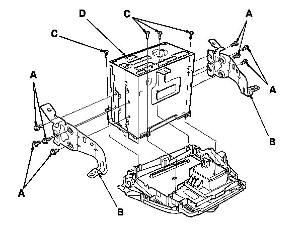 8. Remove the screws (C) and audio-navigation unit (D).