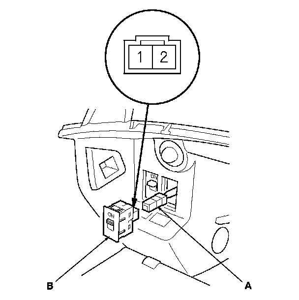 2. Disconnect the 2P connector (A) from the keyless access system mode switch (B).