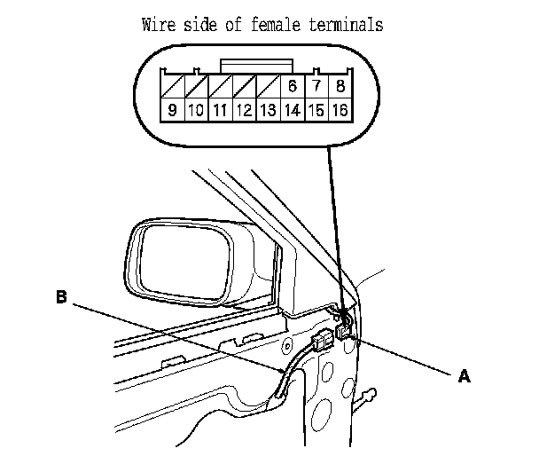 2. Disconnect the 16P connector (A) from the door harness (B).