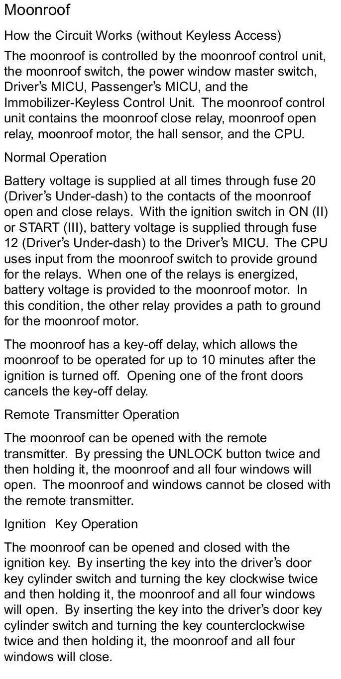 How The Moonroof Circuit Works (Without Keyless Access)