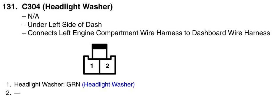 View 131 - C304 Connector View (Headlight Washer)
