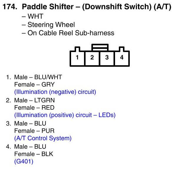 View 174 - Paddle Shifter - (Downshift Switch) Connector View (A/T)