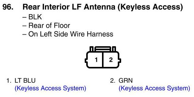 View 96 - Rear Interior LF Antenna Connector View (Keyless Access)