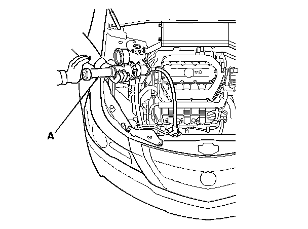 3. Attach a commercially available pressure tester (A) to the radiator, and apply a pressure of 93-123 kPa (0.95-1.25 kgf/cm2, 14-18 psi).