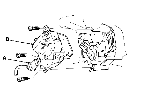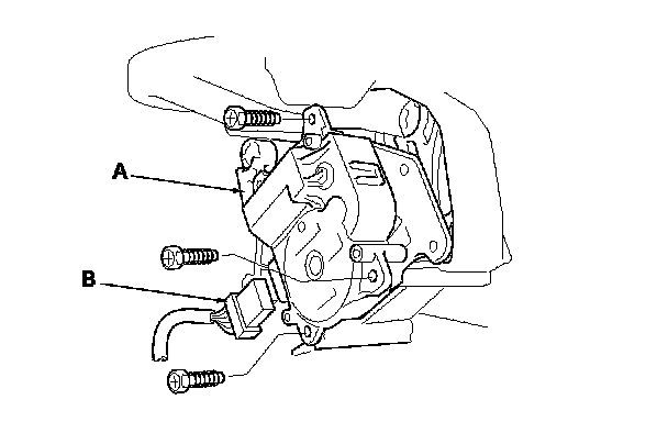 4. Disconnect the 7P connector (A) from the recirculation control motor (B). Remove the self-tapping screws and the recirculation control motor from the blower unit.