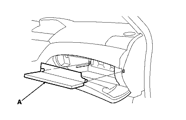 1. Open the glove box. Remove the glove box separator (A) by carefully pulling it straight back.