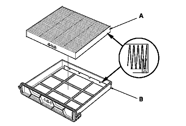 3. Remove the filter (A) from the housing (B), and replace the filter.
