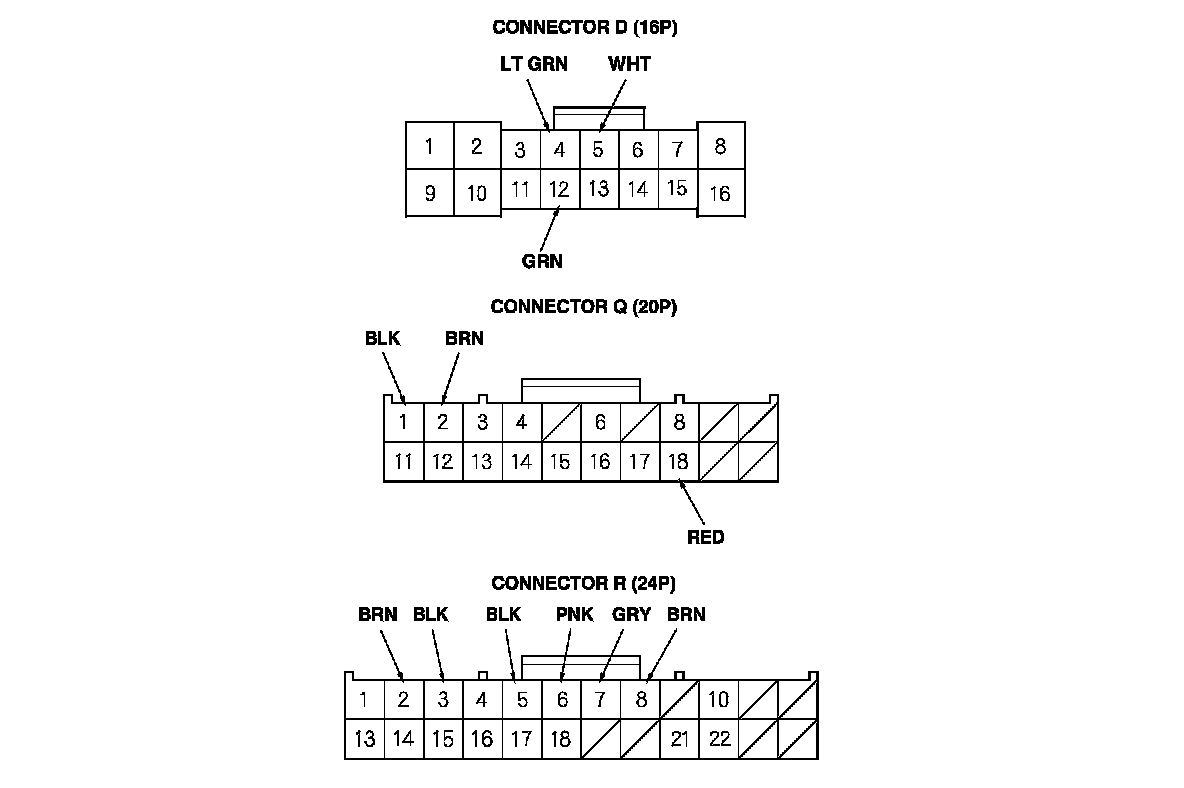 3. Disconnect driver's under-dash fuse/relay box connectors D, Q, and R.