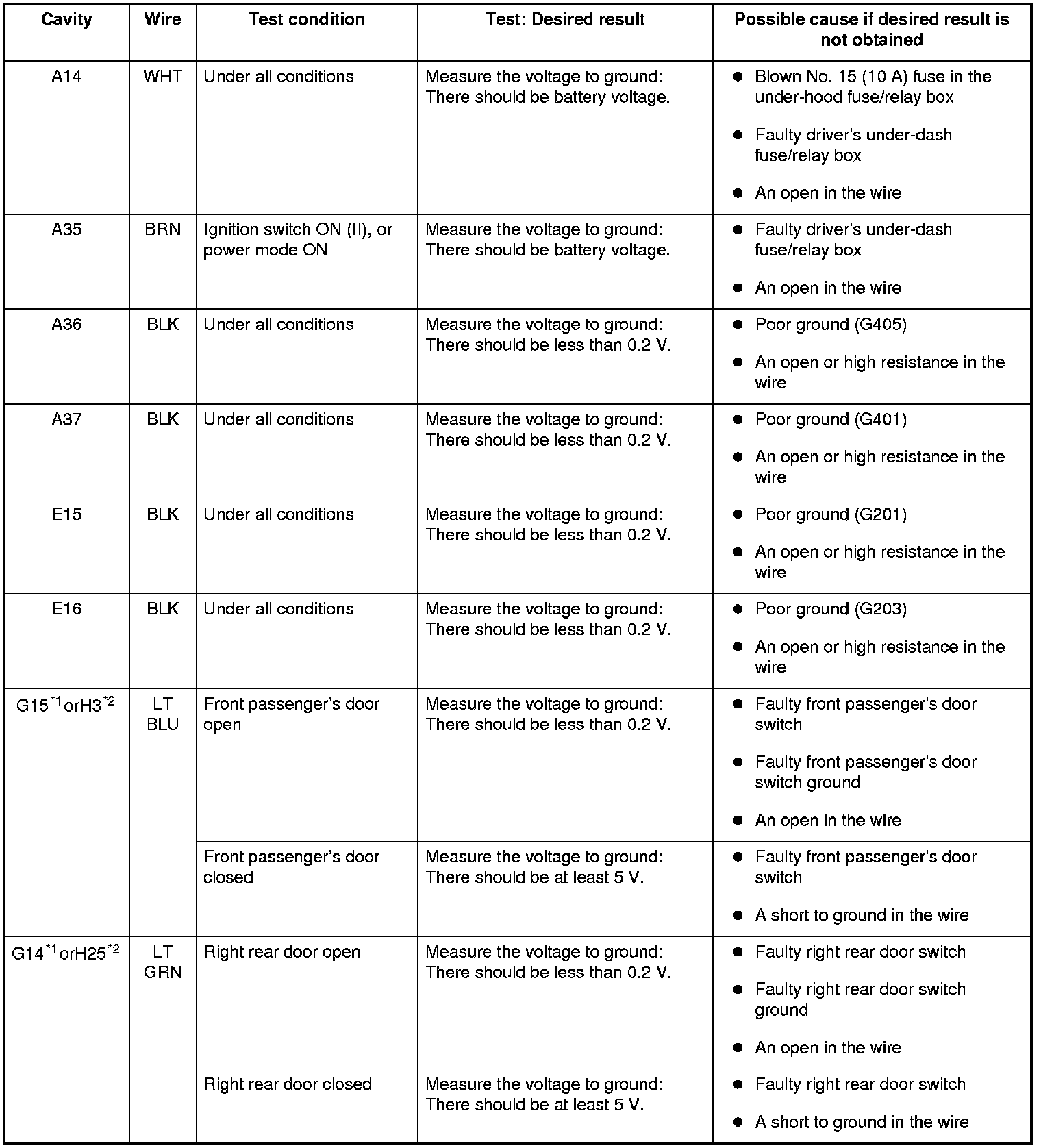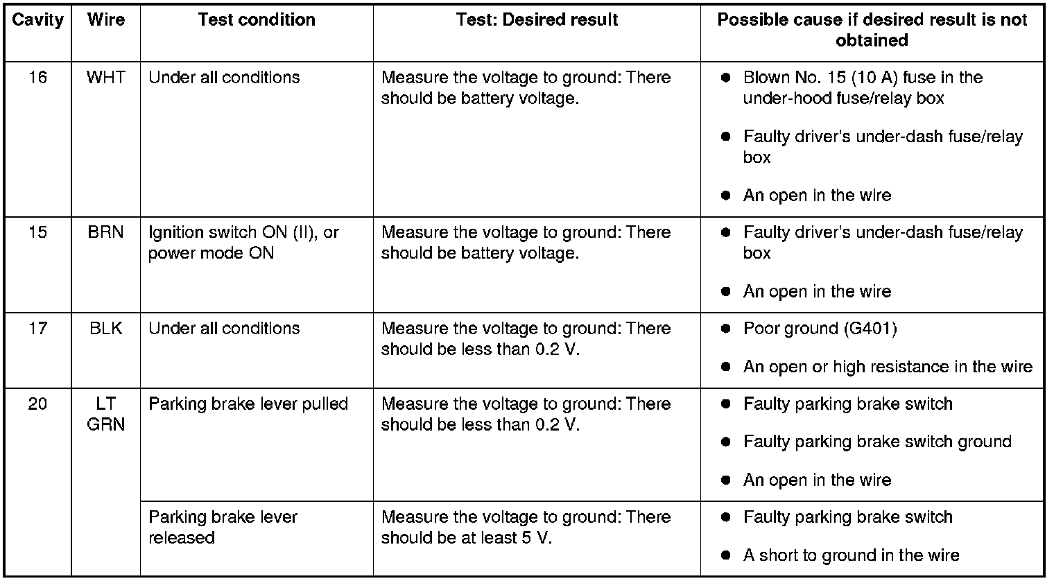 - Before doing the input tests, check the No. 12 (7.5 A) fuse in the under-dash fuse/relay box.