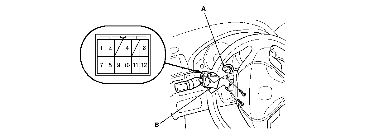 3. Disconnect the dashboard wire harness 12P connector (A) from the combination light switch (B).