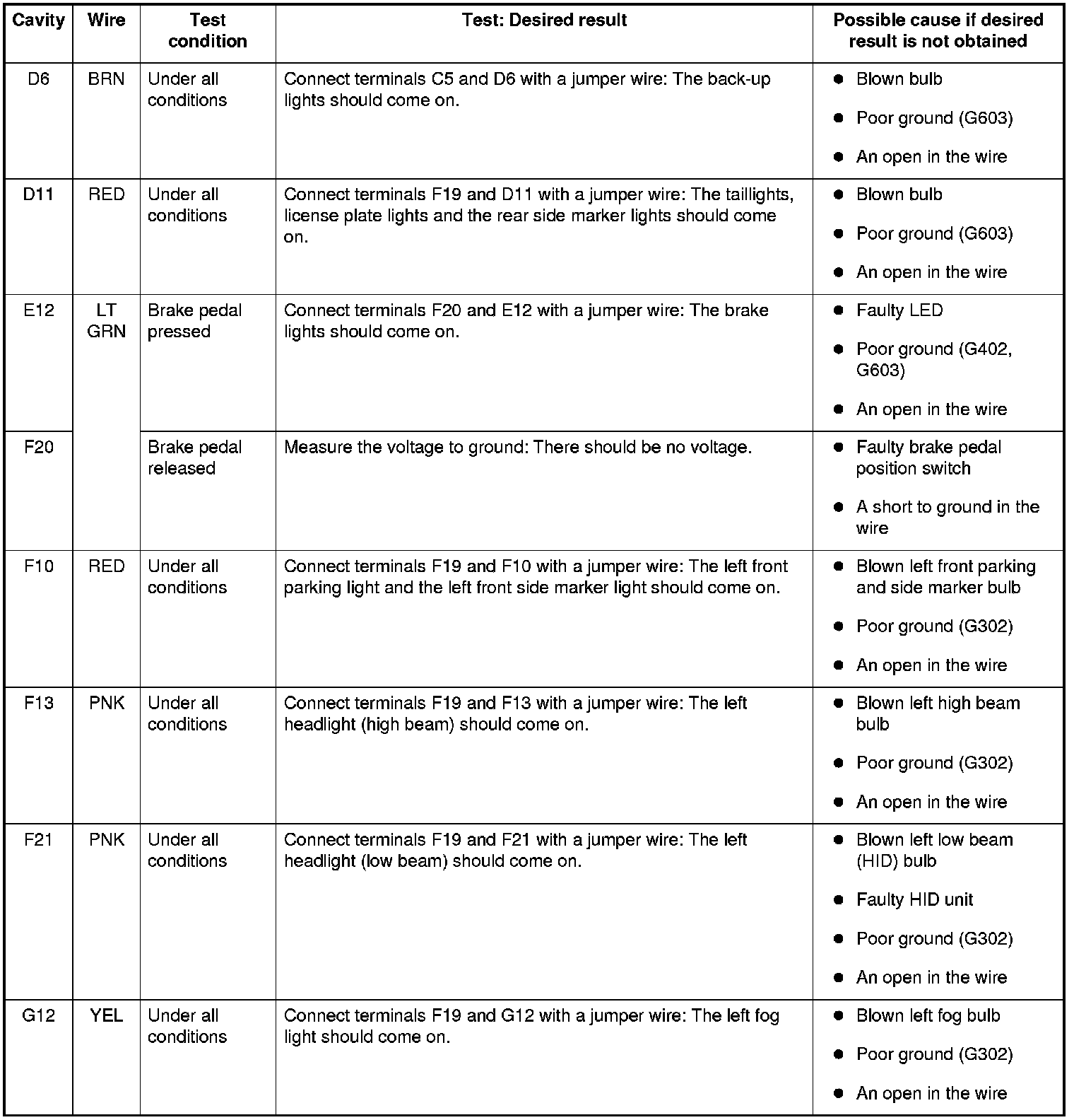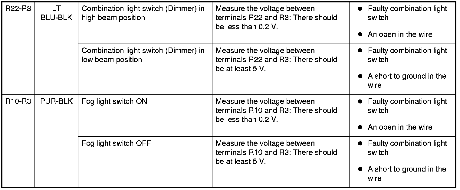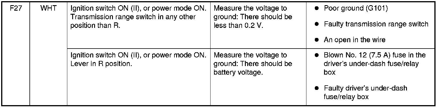 6. Reconnect the connectors to the driver's under-dash fuse/relay box, and do these input tests at the following connectors.