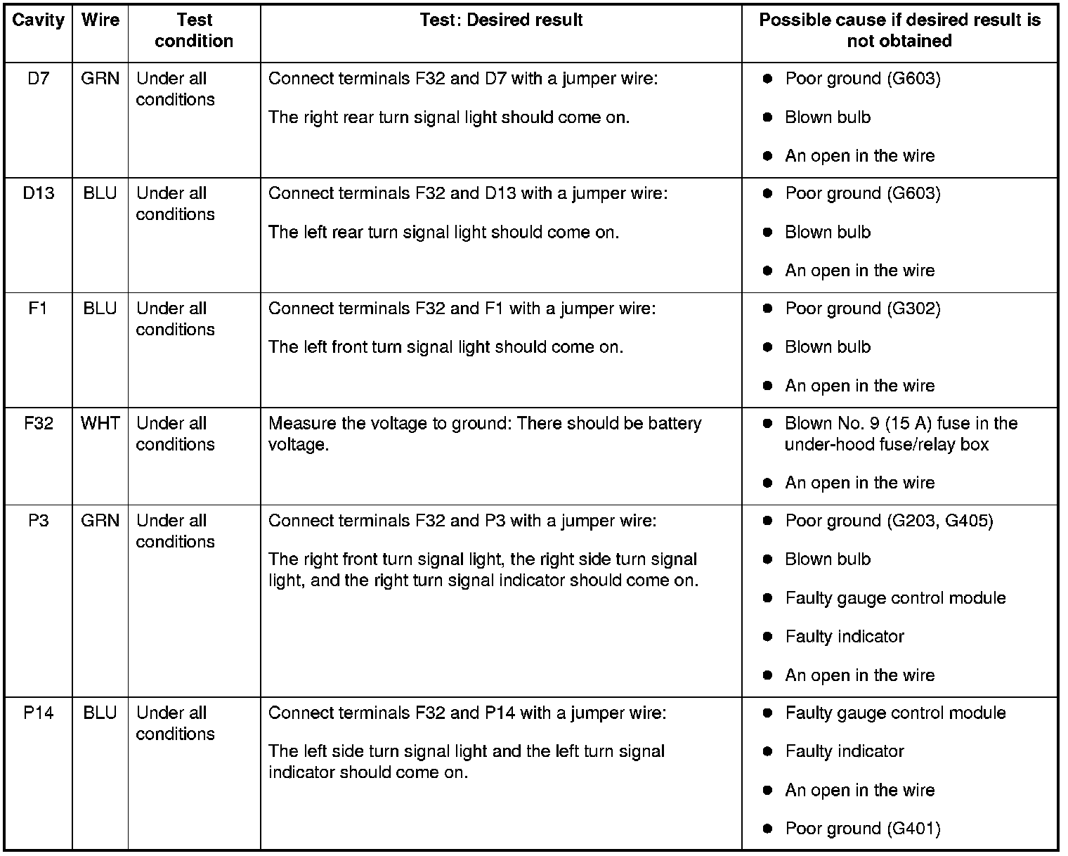 Turn Signal/Hazard Warning Lights MICU Input Test