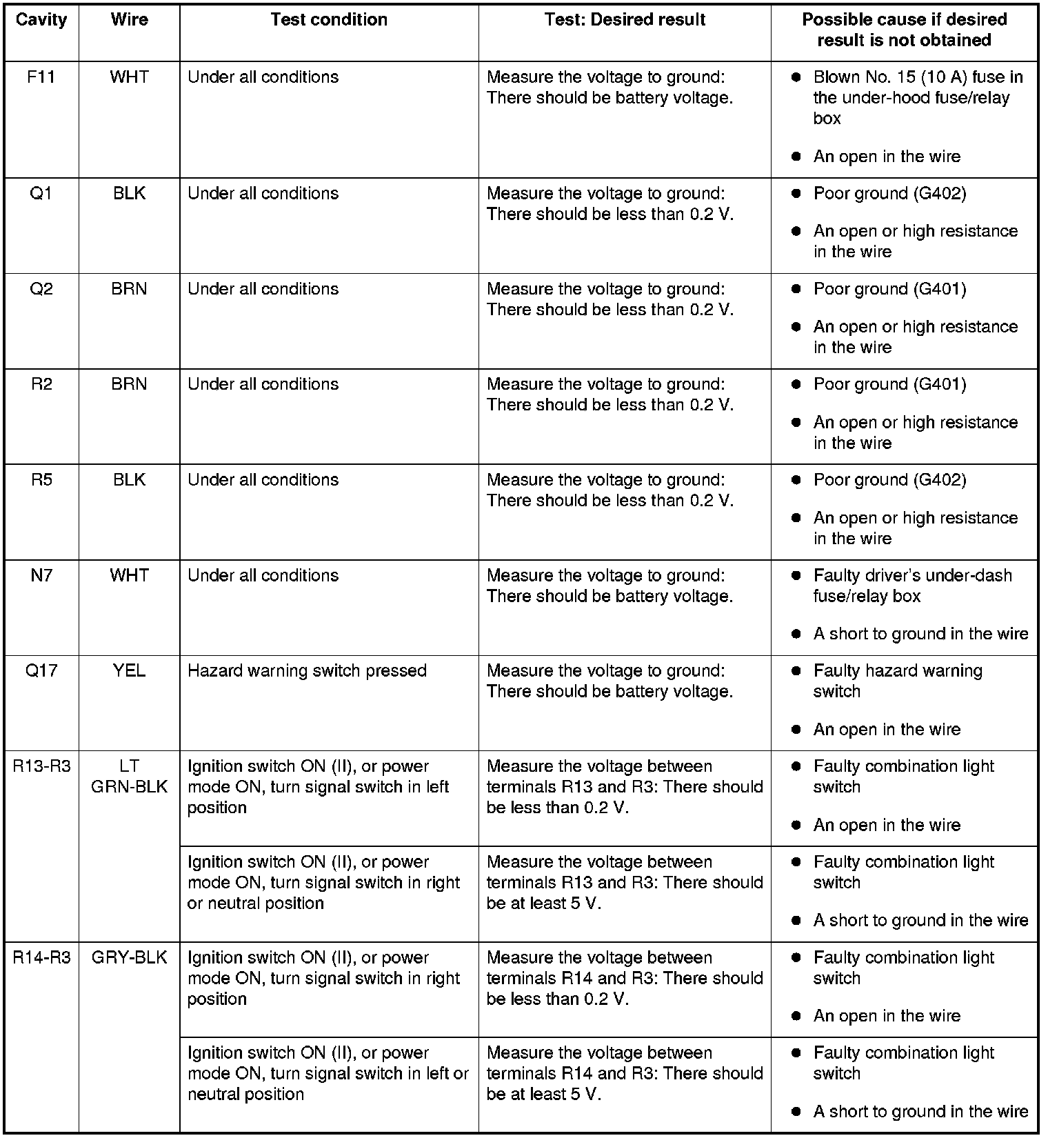 - Before testing, make sure the No. 12 (7.5 A) fuse in the driver's under-dash fuse/relay box is OK.