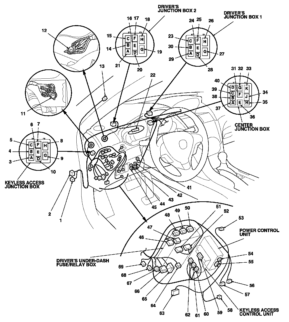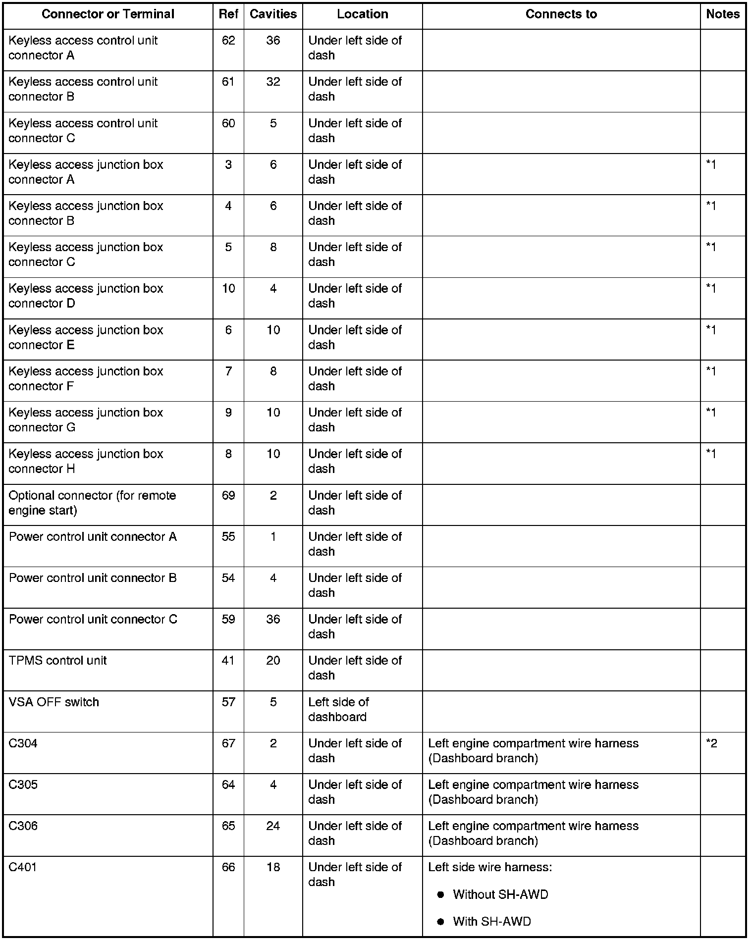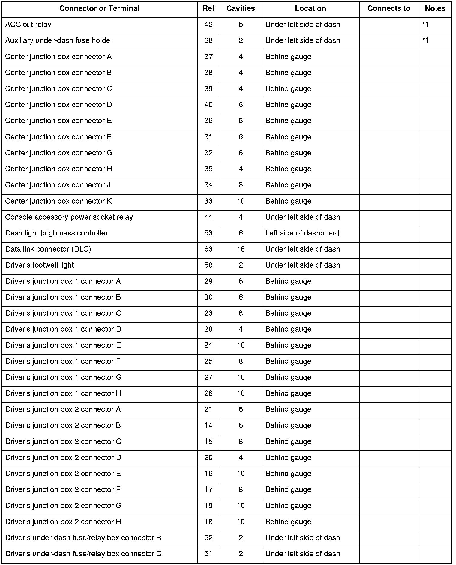 Dashboard Wire Harness (View of driver's side) Connector and Harness Locations