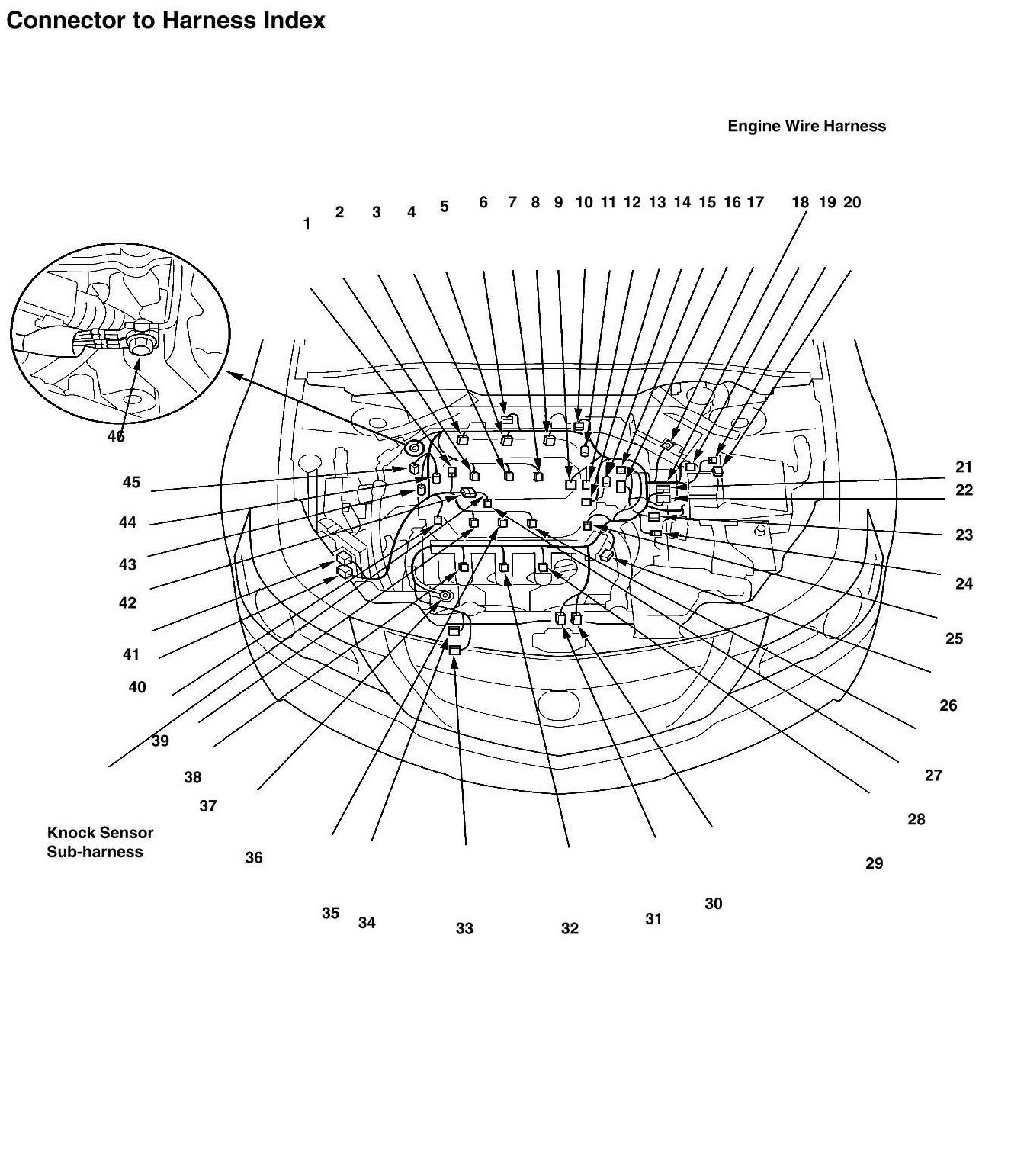 Engine Wire Harness (Engine Section) And Knock Sensor Subharness Connector And Harness Locations